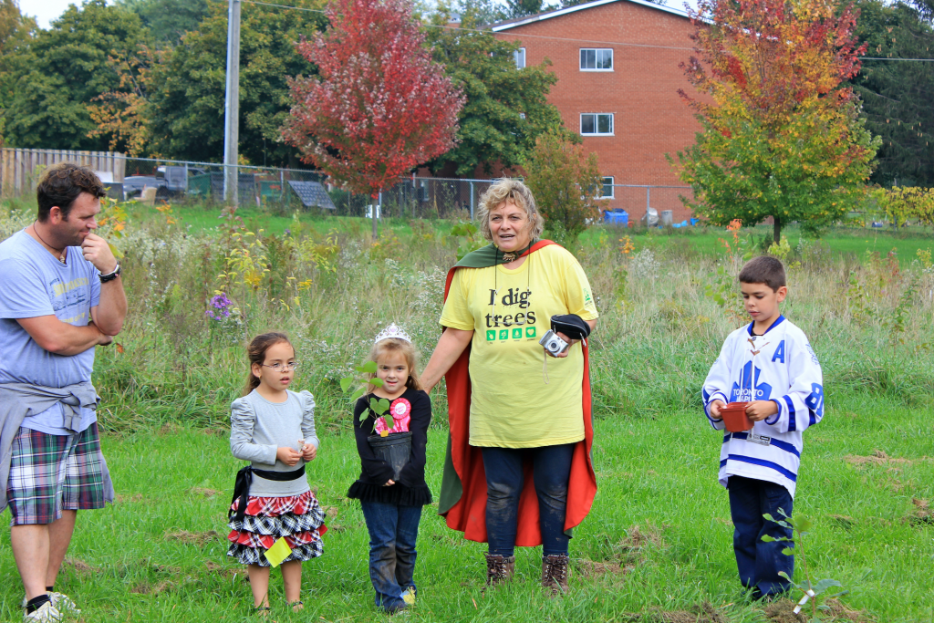 Many volunteers brought along some little tree planters with them to help out and have some fun learning about the environment. The kids’ excitement and willingness to give back bodes well for the future of the Forest city, but it’s one little planter’s dedication to the cause that was particularly inspiring. When Grace Ella saw a flyer at the library for a tree planting on October 6th she instantly knew how she’d be celebrating her fifth birthday. Her father, who had taken her along to another tree planting earlier in the year, was surprised that this was how Grace Ella preferred to celebrate instead of the party and bouncy castle he was expecting. When he asked her again if she was sure she’d like to plant trees she quickly responded, “Do you like to breathe Dad? And do you know how many families of birds and squirrels live in trees?” With a shiny tiara on her head and a group of girls by her side, Grace Ella got to be queen of McCormick Park on her special day and was rewarded at the end with a birthday serenade by the group and her very own tree to plant in her backyard.