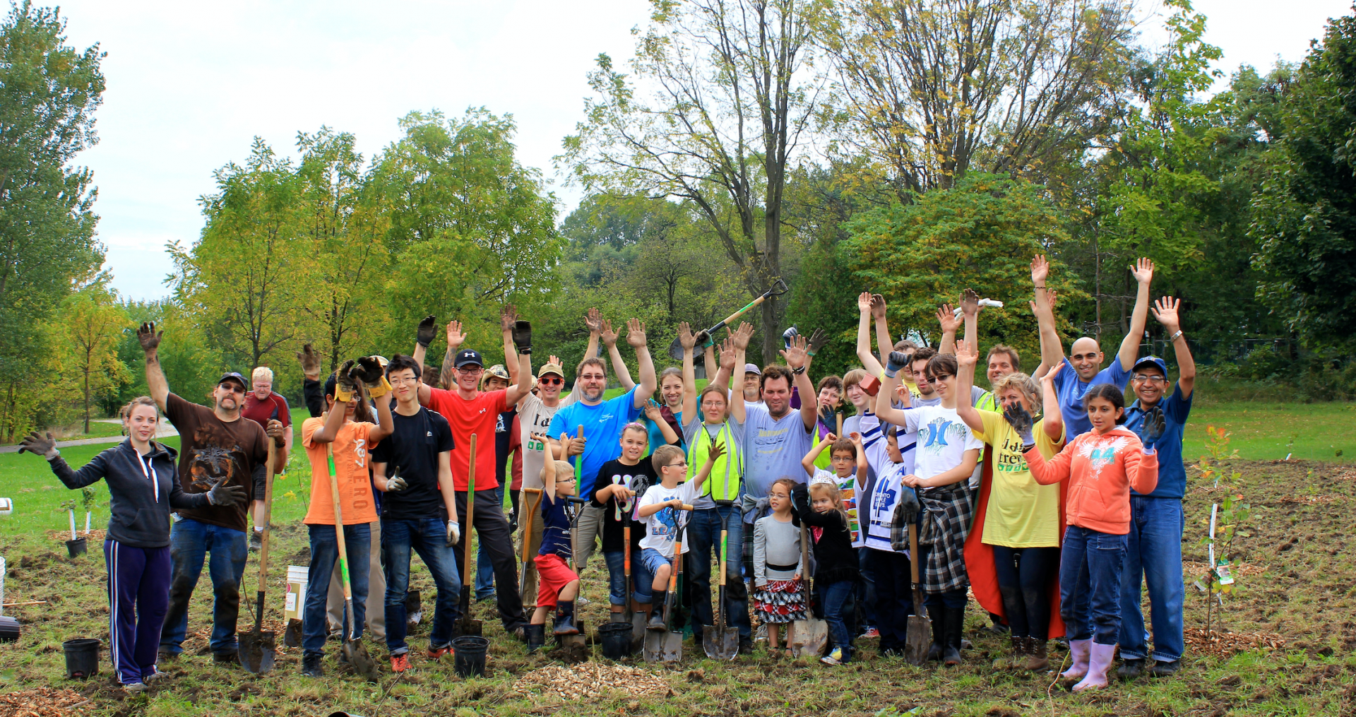 Over fifty eager volunteers gathered at London’s McCormick Park on Sunday October 6th to participate in the ongoing naturalization project in the northeast London green space. Thanks to generous funding from Equal Action, London Life, and Environment Canada and the hard work of the ReForest London team and their enthusiastic group of volunteers, four hundred and fifty new trees were planted in McCormick Park. Though it’s difficult to picture exactly what these small trees will mean for the space, seeing the beautiful mature trees surrounding the planting sites one can imagine the lush and colourful forest of the future Park.