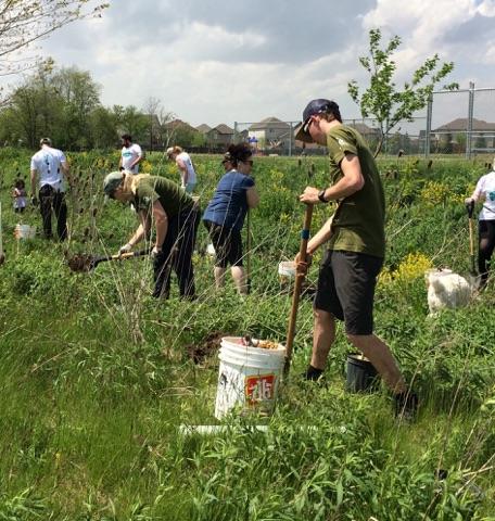ReForest London staff Kaitlin and Brad, along with Tree Canada representative Donald Craig were joined by 8 staff from the IKEA Canada London to plant 36 native trees and 20 native shrubs in and around a pond in south London.