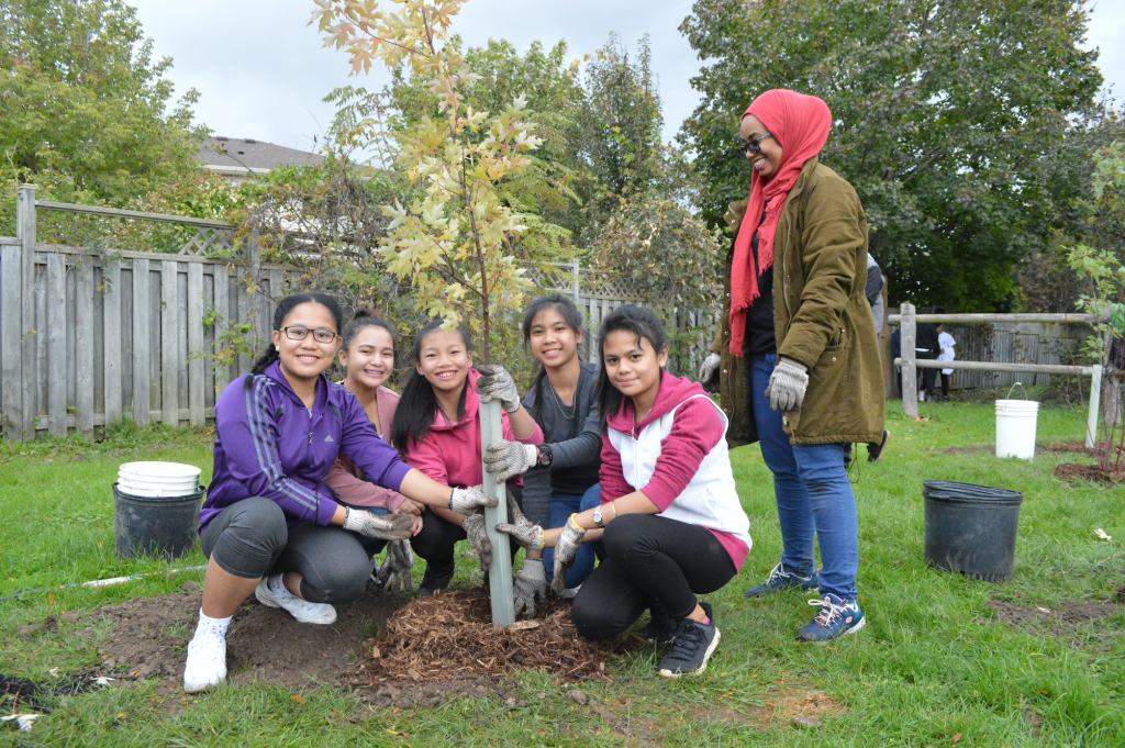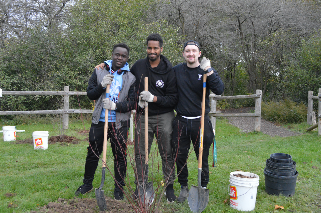ReForest London held their second of two Multicultural Planting events. Despite the rainy weather, many came out to plant! Volunteers included members of the South London Neighbourhood Resource Centre, YMAP, Old Oak Properties and the community. Additionally, there were a number of language interpreters in attendance to aid communication and to improve the experience of all attendees. Over the course of the planting event, 60 volunteers planted nearly 20 large shade trees along the park pathways, and over 200 native trees and shrubs in naturalization areas throughout the park. Neighbours and local dog walkers expressed their excitement over these new additions to the park. Following the tree planting, volunteers broke out into focus groups and discussed the importance of volunteering in the community, planting trees, and what kinds of trees were of cultural significance in their home countries. Thank you to everyone who participated!